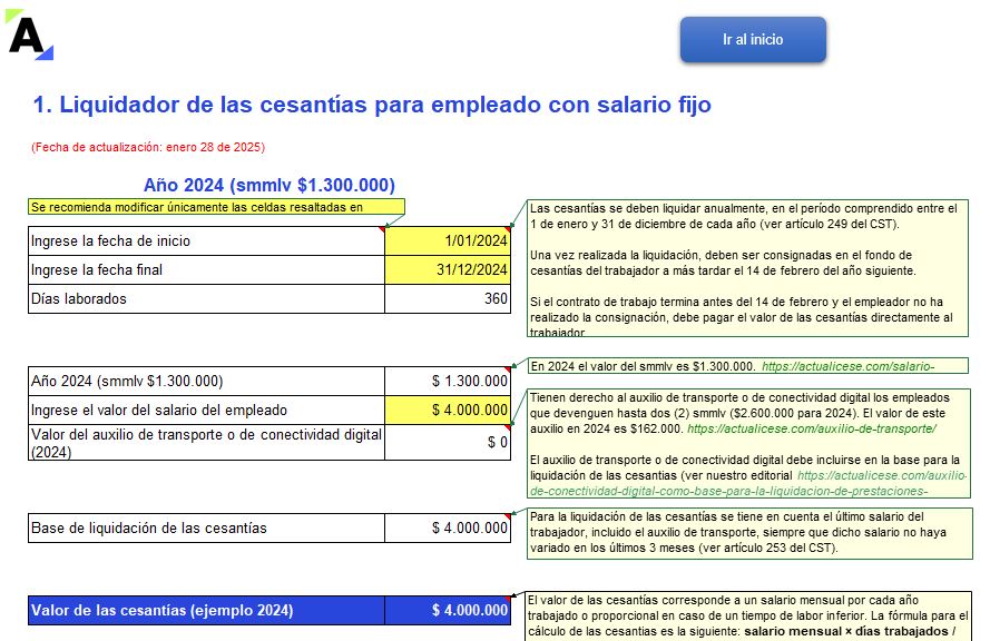 - Cálculo de cesantías acumuladas: Las cesantías se calculan multiplicando el salario mensual por el número de meses trabajados y dividiendo entre 12. En este caso: