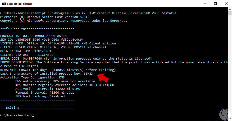 4. Comprobación de Formato: Asegúrate de que la clave siga el formato estándar de Office (25 caracteres, con grupos de cinco).