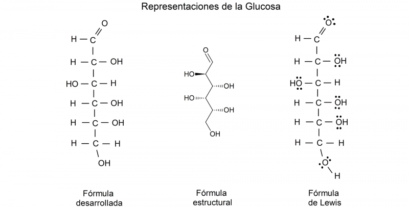 La glucosa, un monosacárido esencial, tiene la siguiente fórmula estructural: